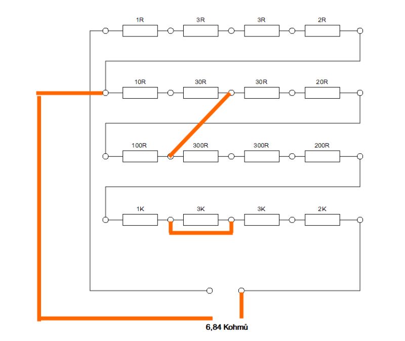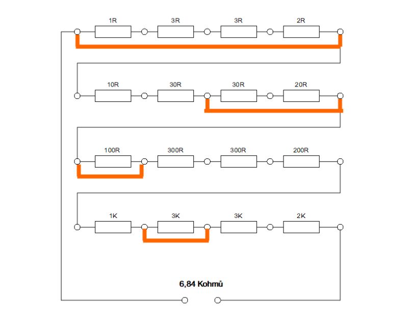 |  | | Ukázka, jak nastavit celkový odpor na hodnotu 6,84 kOhmů |
